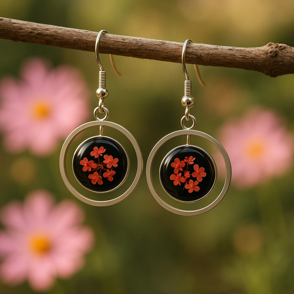 Scarlet Bloom Earrings – Botanical Resin Collection